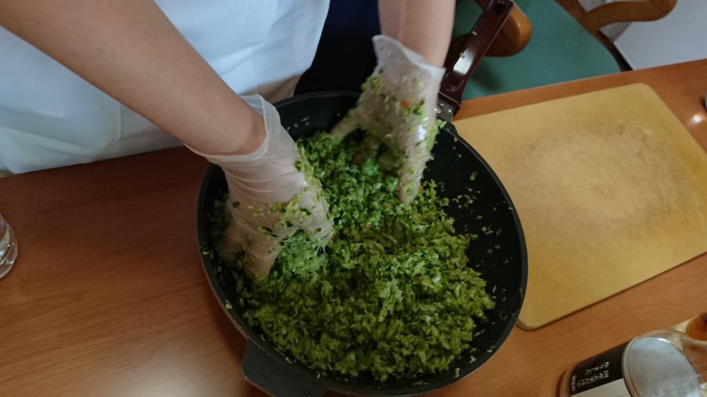 中の具もお塩を使わずにごま油だけで、ギューっと揉めば簡単☆